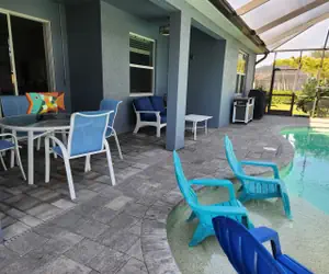 This peaceful oasis is nestled in the family friendly community of Pelican, in Cape Coral, Florida. You and your group will enjoy the lushly landscaped, private backyard with a beautiful screened in pool, cushioned lounge chairs, and a BBQ to whip up those tasty outdoor meals.