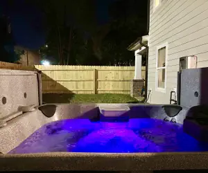 The private backyard — fully fenced — features a 4 person hot tub and fire pit along with a set of outdoor chairs for relaxing and enjoying a glass of wine around the fire ... or in the hot tub! After a long day of exploring or traveling into Charlotte, this is the perfect retreat! NOTE: Outdoor noise is permitted only between the hours of 8am-10pm. Please only book our home if you are ready to be a good neighbor!