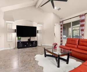 ➹ Sunlit Sanctuary: Wake up to the gentle embrace of sunlight in a vacation home that balances fun and relaxation with a pool table and a private patio.
