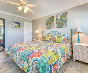 This condo can conveniently accommodate a party of 8. The master bedroom has a king-sized bed that comfortably sleeps 2, as well as a private, full bathroom attached to it. The guest bedroom has 1 queen size bed and 1 bunk bed along with an attached full bathroom that is also accessible from the living room area. The living room is equipped with plenty of comfortable seating for lounging and relaxing throughout the day during your breaks from the beach, as well as a pull-out sleeper sofa bed that can comfortably sleep 2. The total sleeping accommodations for this condo are 8 guests.