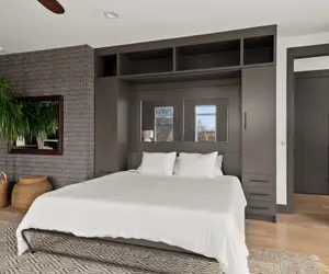 Experience unmatched sunset views against the Nashville skyline from The Aerial, where every evening feels exclusively yours. The surrounding trees offer a serene backdrop for unforgettable dinner parties. And our living room, with its light-filled ambiance and skyline view, is the heart of our retreat.