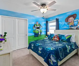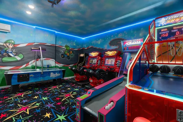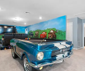 Welcome to Chillax Inn Lana, a stunning 8-bedroom, 6-bathroom villa in Windsor Island perfect for large groups or families. Enjoy endless fun with a free in-home arcade, themed rooms, and a private pool and spa. Relax in the spacious living areas, cook in the fully-equipped kitchen, or challenge friends at the Mustang car pool table. Windsor Island's amazing amenities include a lazy river, poolside bar, and more. Book your unforgettable stay today!