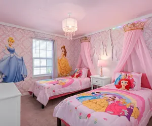 Escape to Chillax Inn Summer, a 5-bedroom vacation rental perfect for families, located in the serene Windsor Island Resort. Enjoy themed bedrooms for the kids, a private pool, and a free in-home arcade. The home offers a spacious kitchen, multiple dining options, and access to resort amenities like a clubhouse, communal pool, and gym. With a private fenced backyard, this home comfortably sleeps up to 10 guests.
