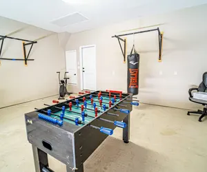 Rooms are comfortable and ready for your relaxation preference. 2 of the bedrooms are in the front near the entrance and the Master is at the back of the home. This was a model home so you will enjoy all the upgrades here! We turned the garage into an athletic and fun zone so feel free to kick box, work out our play Foosball.