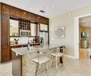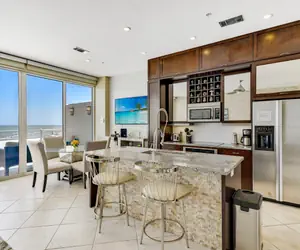 Located on the fifth floor, Penthouse 5PH3 is a cherished retreat for our family, recently decorated to enhance its elegance and comfort. Unlike most units, ours boasts panoramic 180° views of both the Gulf of Mexico and the bay, visible through breathtaking floor-to-ceiling windows and a private oversized balcony—the perfect spot for your morning coffee or an evening cocktail. 5PH3 is a unique penthouse located in the amenities building at Diamond Beach. Located close to the main elevators, 5PH3 has one of the shortest walks to the lazy river, pools, beach access, movie theater, fitness center, spa, and more!