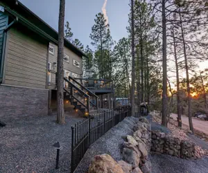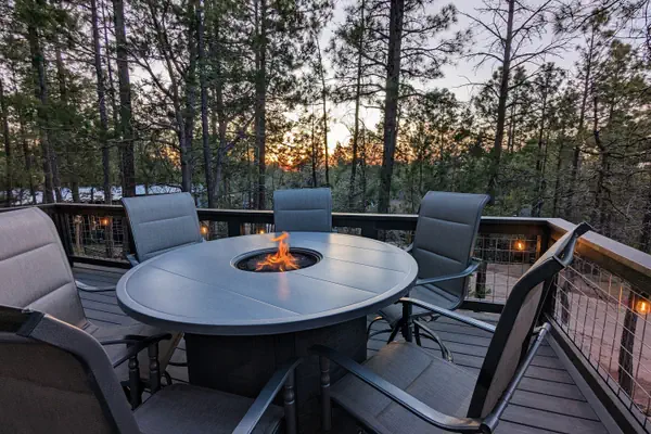 Discover comfort and tranquility in our newly built (2023) 3-bedroom, 2-bath home perched on a scenic hillside. Enjoy breathtaking views of towering pines and stunning evening sunsets from the elevated deck — the perfect spot to unwind around our spacious 6-seat fire pit table.