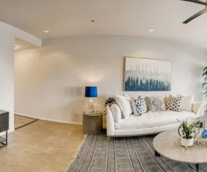 Breathtaking waterfront resort villa with 1750 sf, newly renovated & designer furnished. 3 bed/2 baths, sleeps 6-8 people with unique wrap around porch and panoramic view on lake travis. Full access to island amenities including indoor/outdoor pools, hot tub, spa/fitness facility, tennis court and picnic area. 2 large covered parking spots. 26' boat slip is available to rent. Pets are allowed with additional fee.