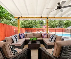 Last but not least we have our amazing covered patio private pool, nice central patio furniture, lounge chairs with large covered umbrella for an afternoon conversation with your friends and family, or a late night whiskey or barbeque.