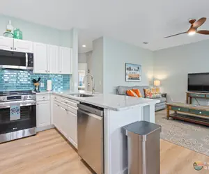 This gorgeous 2-bedroom, 2-bath apartment is beautifully appointed with whimsical ocean-inspired décor and offers plenty of room for you and your guests to sprawl out during your stay!