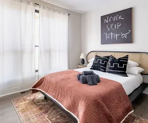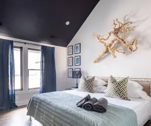 This 3BR/3.5BA modern townhome in Charlotte’s Lower South End (LoSo) offers rooftop relaxation and upscale comfort just minutes from South End and Uptown. Each bedroom has a private ensuite bath, with 2 king suites and a queen room. Enjoy a rooftop fire pit, chef’s kitchen, Smart TVs in every room, record player, and garage parking. Walk to the light rail, breweries, restaurants, and pickleball. With high-end furnishings and a quiet location, it’s perfect for group stays and weekend getaways.