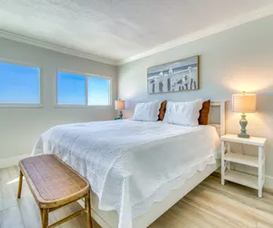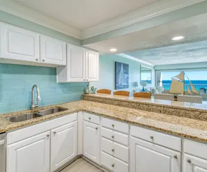 This condo can conveniently accommodate a party of 8. The master bedroom has a king-sized bed that comfortably sleeps 2, as well as a private, full bathroom attached to it. The guest bedroom has 2 full beds along with an attached full bathroom that is also accessible from the living room area. The living room is equipped with plenty of comfortable seating for lounging and relaxing throughout the day during your breaks from the beach, as well as a pull-out sleeper sofa bed that can comfortably sleep 2. The total sleeping accommodations for this condo are 8 guests.