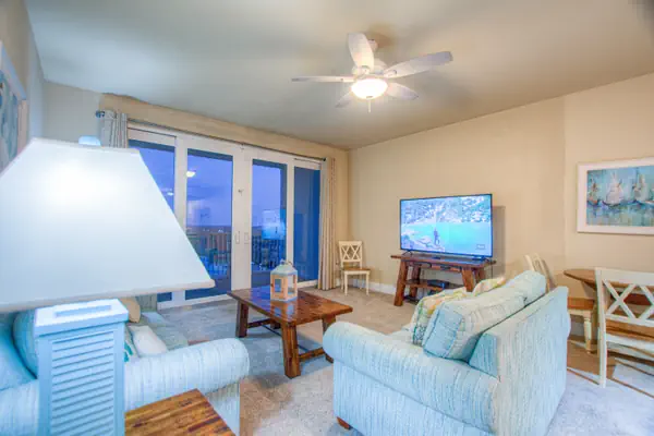 The unit has been beautifully decorated and offers the perfect setting for a beach getaway. You will find this spacious kitchen to flow perfectly with the open and spacious living room. The comfort of the fluffy furniture and the clean design will make you feel at home. The kitchen is very well stocked, it offers anything and everything you may need to cook a three course meal. The bunk area is secluded and has a private bathroom accessible right across. The master suite has the most comfortable bed and perfect shades to guarantee a good night sleep after a long day at the beach. The private master bathroom and extra large closet space complete the perfect ambiance for comfortable stay.