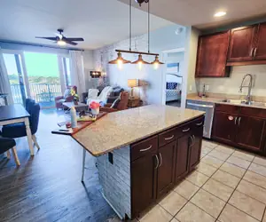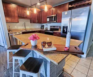 The unit has been beautifully decorated and offers the perfect setting for a beach getaway. You will find this spacious kitchen to flow perfectly with the open and spacious living room. The comfort of the fluffy furniture and the clean design will make you feel at home. The kitchen is very well stocked, it offers anything and everything you may need to cook a three course meal. the bunk area is secluded and has a private bathroom accessible right across. The master suite has the most comfortable bed and perfect shades to guarantee a good night sleep after a long day at the beach. The private master bathroom and extra large closet space complete the perfect ambiance for comfortable stay.