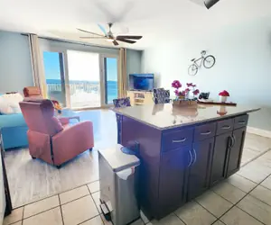 The unit has been decorated extremely tastefully and no expense has been spared for the comfort of our guests. The kitchen is fully equipped with everything you will need. Themaster bedroom has an extremely comfortable King Bed and en suite Bathroom. The bunk area is secluded and has brand new mattresses and a private bathroom. The living area is extremely spacious and open, it offers a sleeper sofa couch and brand new furniture for he ultimate luxury feel. The condo is 1050 sq.ft and it is located in the best floor- 5th. RIght across the 10th level you will find one of the best pools in the complex, hidden away and extremely close, so no elevators needed to access it.