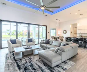 Step inside to discover a spacious, open-concept living area with tasteful decor and modern furnishings, providing the ideal space for your group to unwind.