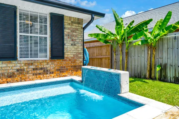 Our favorite part of this home is the outdoor space. Outdoors you will find a stunning waterfall pool, sun loungers, firepit seating, an outdoor tv, and the most fun tiki bar around! After taking the direct path to the beach and dazzling Gulf of Mexico, be sure to wash off under the outdoor shower just inside the gate.
