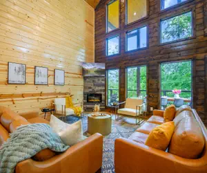 Welcome to High on the Pines, a modern cabin with nostalgic charm and breathtaking mountain views—perfect for families and friends. This inviting retreat offers two king suites, a third bedroom with queen-over-queen bunk beds, and three full bathrooms for ultimate comfort.