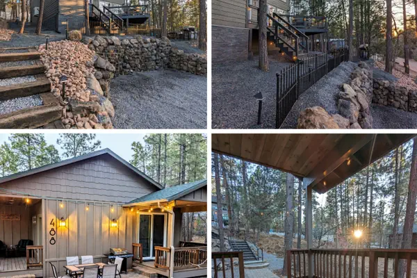 The Hillside Hangout boasts a beautiful elevated deck with sweeping views, while the Cozy Cottage Lakeside has a private-feeling front yard, designed for relaxing and entertaining.