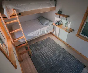 Designed with intentional minimalism and warmth, the tiny home features: