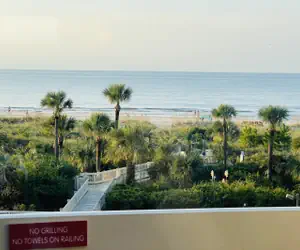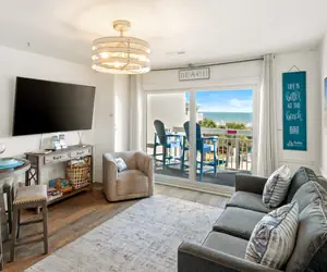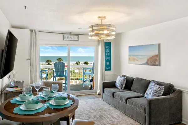 Breakers 324 is a top-floor oceanfront condo on Hilton Head Island, offering breathtaking ocean views of the Atlantic from a private balcony. This bright, inviting unit features a comfortable living area with a sleeper sofa and TV, a well-appointed bedroom with a King Bed and Build in Bunk Beds. 2 suitable for Children, a modern kitchenette for light cooking, and a private in-unit washer and dryer. Located directly on Coligny Beach, guests enjoy easy access to the sand, a heated oceanfront pool, and a peaceful, private atmosphere. The condo is within walking distance of shops, restaurants, cafés, and entertainment at Coligny Plaza, making it convenient for dining, shopping, or evening strolls. Perfect for couples, small families, snowbirds, or anyone seeking a relaxing beach getaway, Breakers 324 combines comfort, convenience, and one of the most desirable oceanfront locations on Hilton Head Island.