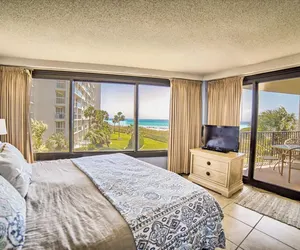 THIS UNIT COMES WITH RESORT TRAM PASSES This 2 bedroom, 2 newly remodeled bath condo is located in Beachside Tower One. It is on the 3rd floor of the building on the east side. It has a Master bedroom on the gulf side of the condo with views from the bed of the emerald green water and sugar white sand. There is a private Master bathroom with a oversized Tub/Shower combo. In the living room, also facing the Gulf of Mexico, there is a sofa sleeper, flat panel tv along with plenty of seating. The guest room has a bunk set with a twin on top and Full on the bottom. There is also an additional twin bed in the guest room. Hallway bathroom has a door to guest bedroom as well for convenience. In the hallway there is a stackable washer/dryer. The kitchen is fully equipped and the dining and bar area have plenty of chairs and stools for comfortably eating in the condo. The pool is large and conveniently located to the condo. Outdoor grilling, sunning and eating areas along with a fitness room make the common areas just perfect.