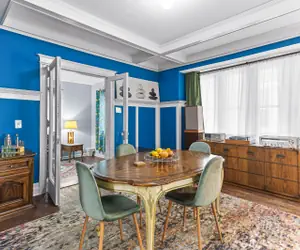 Fully renovated, our home sleeps six guests across three queen size beds (& 2 twin size air beds if needed), features WiFi, an office for your work needs, a gorgeous bathroom with all the amenities, including heated floors, towel warmer, walk in shower with rainfall shower head and a wand. The kitchen has a gas stove, small appliances such as Keurig coffee maker, Instapot, air fryer, Breville toaster. The dining room is located off the kitchen and is a cozy place to eat meals in peace or with music, or switch it up and have a meal in the den, which overlooks the backyard.