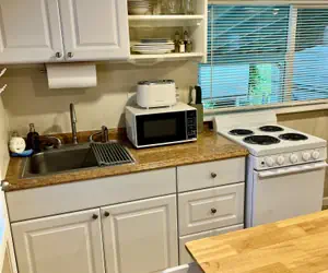 Fully Equipped Kitchen: Enjoy the convenience of your own kitchen, complete with a full-size refrigerator, stove, microwave, and coffee maker. It’s perfect for preparing everything from morning coffee to a full meal.