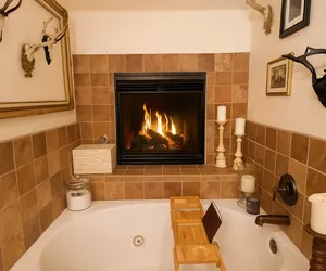 After a day of winter exploration, warm up by your roaring fireplace 🔥, or sink into the jetted tub while the bathroom's gas fireplace glows above you. Step outside to enjoy the patio fireplace or fire up the grill - we provide two propane tanks (one for each). Please note: if propane runs empty during your stay, refills are the guest's responsibility. When it's time to rest, snuggle into one of your super comfy Tuft and Needle king mattresses, or pull down the Murphy bed for the kids or extra guests. Pure mountain bliss awaits.