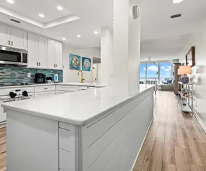 This coastal gem has been lovingly updated from top to bottom with handpicked finishes and thoughtful details. The open-concept kitchen and living area is breathtaking, featuring stunning solid surface countertops, a custom tile backsplash, and a fully stocked kitchen. The cozy living area invites you to kick back and relax while taking in the endless Gulf views.