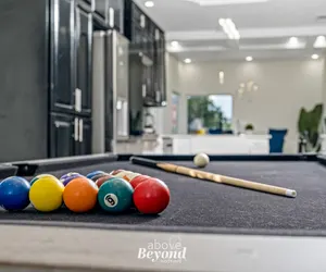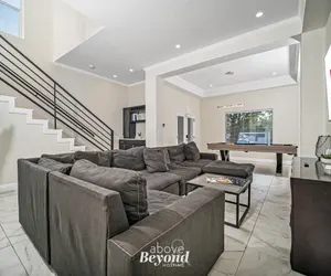 I spy with my little eye... the Alamo Dome! Have you seen the perfect evening hangout spot on the roof with a relaxed view to boot? Featuring ginormous bathrooms with multiple shower heads, a pool table amongst the sprawling downstairs area, a private brunch spot overlooking the greenery, and minutes- access to downtown and the Alamo Dome... this is the spot for large families and groups to land. We have multiple properties next to each other so invite your friends and family– everyone can come!