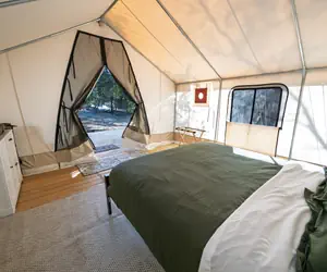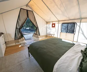 Escape to the peaceful beauty of Palomar Mountain in this private wall tent at Harrison Serenity Ranch, a 67-acre off-grid sanctuary surrounded by the Cleveland National Forest. Perched 3,600 feet above sea level, this serene retreat combines the rustic charm of nature with the comfort of a cozy, well-appointed glamping space.