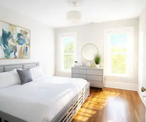 Each room includes fresh linens, hangers, and thoughtfully arranged comfort for a restful stay.