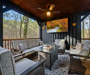 • ⭐ Luxury outdoor living • Oversized TV & conversation set • hardlined firepit on deck