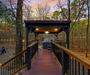 • ⭐ Private covered hot tub with string lights for nighttime soaking 💦✨
