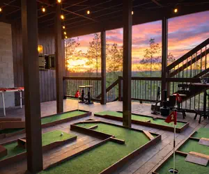 With three expansive decks overlooking rolling hills and towering pines 🌄🌲, a private putt-putt golf course ⛳, and five-star king suites ⭐⭐⭐⭐⭐, this retreat delivers an unforgettable stay.