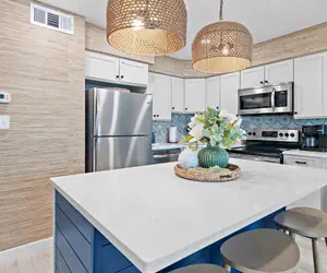 Relax and unwind in this cozy Seagrove condo. Boasting Gulf views and direct beach access, this one-bedroom getaway comes fully equipped with all the comforts of home. The full kitchen comes ready for home cooking with a full suite of major appliances, including a dishwasher for easy cleanup. The private balcony is perfect for sipping a morning cup of coffee or a sunset cocktail. The spacious primary bedroom includes a smart TV for added entertainment options. A built-in hallway bunk nook is great for kids to have their own space.