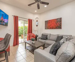 Located in the Regal Palms Resort in nearby Davenport, our 4-bedroom, 3-bath townhome provides all the comforts of home with access to all the community amenities for an additional fee of $22.40 + tax per day, an amount that is paid upon check-in at the Resort front desk. (The fees are not included in the reservation costs.) Offering room enough for 8 guests to live the carefree resort life, entry to your home away from home is on the first floor, with the door opening into an open concept floor plan that welcomes all who walk in the front door.