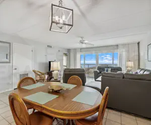 This is a 3 bedroom, 2 bath unit on the third floor. It is a very clean, neat unit with a large comfortable living area which has a TV, VCR and DVD. Master bedroom has a king bed. One guest bedroom has a queen while the other guest room has two twins. There is a full size washer/dryer in the unit for your convenience. The large balcony has a table with six chairs and is a wonderful area to sit and relax while listening to the ocean waves.. All units at Amelia by the Sea are direct oceanfront with private balconies on upper units or patios on ground floor unit. Occupants have access to a private 800 ft. fishing pier and large swimming pool on the ocean side of the complex. ABS is a gated complex with open parking for a MAXIMUM of 2 vehicles per unit.