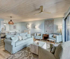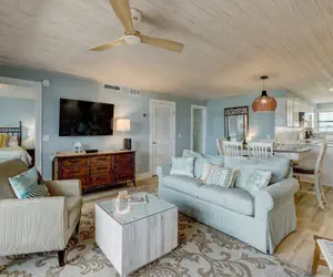 Soft light colors and comfy furniture make this a desirable unit. The open floor plan kitchen which looks into the dining and living room provide spaciousness for your guests. The master bedroom has a King bed, the guest room a queen bed, and the second guest room has a queen and a twin. There is also a sleeper sofa in the living room for an additional sleeping area.