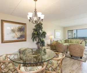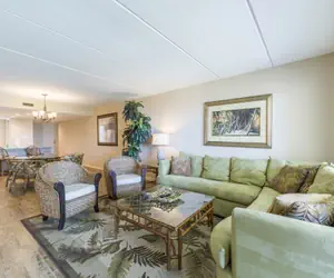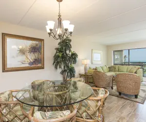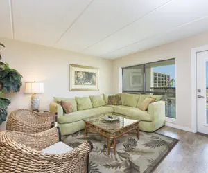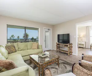 Guests will like hanging out in the comfortable living room while looking out at the views of the beach. The living room does have a flat screen tv for guests tv watching enjoyment.