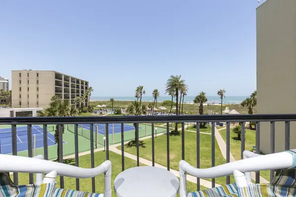 The balcony is a perfect spot to take in the ocean breeze from the Gulf of Mexico and view South Padre Island's beautiful sandy beaches.