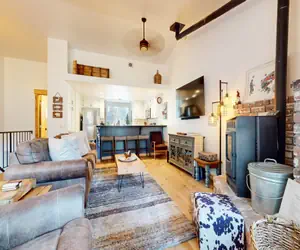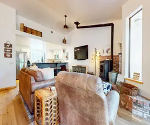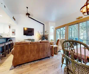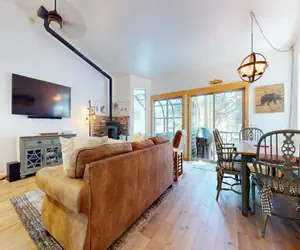 This newly remodeled 2 bed/3 bath condo is the ultimate mountain getaway for the entire family sleeping 6. A beautiful end unit nestled in the quiet corner of the Forest Creek community. Surround yourself with cozy, modern cabin decor, soak in the private hot tub on the enclosed back patio, and a living room that features a large flatscreen TV, pellet stove, free WiFi, and deck with gas grill, seating and amazing forest settings.