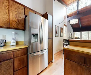 This beautiful recently remodeled, spacious corner townhome offers everything to make your Mountain vacation the best yet. Located in the Mammoth Estates community, this unit is the perfect year-round getaway. Whether you're visiting in winter or summer, this is one of the best locations in town! You’ll be just one block from The Village and the Village Gondola, offering effortless access to shopping, dining, nightlife, and the slopes, all without the hustle and bustle. This beautiful 4-bedroom, 3-bath home is spread over two levels and offers a spacious floor plan with upgrades throughout. Enjoy stone countertops, top-of-the-line stainless steel appliances, hardwood floors, vaulted ceilings and a gas fireplace that creates a cozy yet refined atmosphere. The kitchen is fully stocked with everything you need to prepare family meals, and the adjacent dining area comfortably seats eight. Relax in the living room on the plush sectional sofa while enjoying the gas fireplace and large flat-screen TV. Upstairs, the first bedroom features a queen bed with access to a shared hall bathroom with a walk-in shower. The lower level includes the remaining three bedrooms and two bathrooms. The primary bedroom offers a king bed and a private en-suite bathroom with a dual vanity and tub/shower combo. The second bedroom features a queen bed, while the third bedroom includes two sets of twin-over-twin bunk beds, providing sleeping space for four. These rooms share a hall bathroom with a tub/shower combo. Additional amenities include an in-unit washer and dryer, a mudroom at the entry for gear storage, and a private semi-covered balcony with outdoor seating on the upper level. This home sleeps a maximum of 10 guests, is non-smoking, and not pet-friendly. This unit is the perfect year-round base for your mountain adventures, whether you're visiting in winter for skiing, snowboarding or in summer for hiking and outdoor fun. Conveniently located across the street from a shuttle stop to take you around town. The amenities at this complex come with a year round hot tub and sauna, recreation room, laundry facilities and during the summer months only an outdoor pool. All guests receive complimentary full access to Snowcreek Athletic Club & Spa, Mammoth’s premier fitness and recreation facility. Enjoy a wide range of amenities including an indoor heated pool, steam room, sauna, full fitness center, yoga, Pilates, cycle studio, racquetball courts, basketball court, and a variety of wellness and fitness classes. During the summer months, guests can also take advantage of the outdoor swimming pool, as well as tennis and pickleball courts. Guests will be provided two parking passes. If more parking is required than what is allotted, feel free to call our office for alternative options. Our calendar is updated in real time. (Property Certification #: TOML-CPAN-14020) Unit Code = MES116