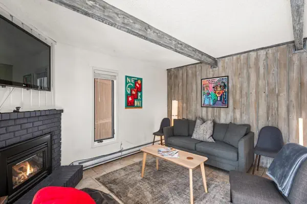 The main living area is bright and sunny, with mountain-facing windows that fill the space with natural light year-round. Curl up by the electric fireplace after a day on the slopes or trails. The open kitchen is fully equipped and spacious enough to host friends and family with ease.