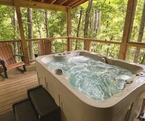 Outdoors, the spacious deck features two Adirondack rocking chairs and a porch swing to relax and enjoy morning coffee and mountain air. However, the star of the show is certainly the hot tub, steamy and hot to soothe sore muscles while soaking your cares away. The tranquil wooded landscape is beautiful, and the charcoal grill is a great addition for gatherings and fun cookouts.