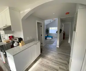 Interior: The home has been completely rebuilt inside, boasting a brand new interior. It features a spacious and fully equipped kitchen with all new appliances, ensuring a comfortable stay. The remodeled shared bathroom includes a tub/shower combo, and the mini split heating and air conditioning system keeps the home comfortable year-round.