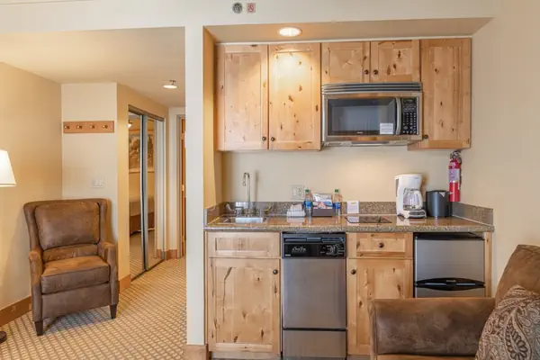 Please note that the resort fee is included in the rate you see.This king suite is the perfect location for your Mt. Crested Butte getaway. Located on the top floor of the building, thisunit has updated furniture. Upon entering the unit, you step into the bedroom area, which includes a pillow-top king-size bed, television, and dresser. The hallway leads to the living area, which includes a full-size sleeper sofa, small dining area, television, and kitchenette. The kitchenette is equipped witha one-burner stove-top, microwave, mini fridge, dishwasher, coffee maker, dishware for 4, as well as cookware and cutlery. Whether you're staying for a night ora week, this unit is the perfect base for your Crested Butte adventure.The Grand Lodge features affordable hotel rooms and suites with kitchenettes, an onsite restaurant and bar and an indoor/outdoor pool. Located in the base area, the Grand Lodge is centrally located and is the perfect base camp for your vacation to Crested Butte. There are few places that can still be called a real Colorado ski town, and Crested Butte is one of them. There are no traffic lights, no chain stores and no high-rise buildings. Yet you’ll quickly see there’s no shortage of entertainment and dining options-all run by some of the most welcoming people you’ll ever meet.Located off the beaten path, Crested Butte is known for some of the best lift-served extreme terrain in the nation. Home to first winter X Games, the longest extreme skiing competition in the world, quirky costume events and our friendly vibe, Crested Butte is a place you want to add to your bucket list. Surrounded by 1.7 million acres of National Forest, there is no shortage of activities to embrace all year long! You can hike, bike, and cross country ski, right out your front door in any direction. With so many events and fun things to do year-round, it's always a good time to visit Crested Butte.
