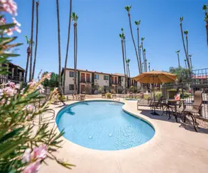 Our community features a gorgeous, large outdoor community space with a fireplace, abundant seating, bocce ball and other outdoor lawn games; 3 grilling stations, heated pool and hot tub, additional seating areas and misters for those warm Arizona days.