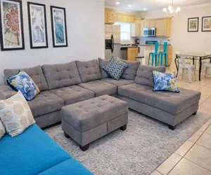 • Condo is very clean inside - all tile no carpeting if allergies. Uniquely has en suite full bathrooms off each bedroom plus a half bath off living room if kiddos sleep on the small fold down couch. The washer/dryer is so nice to use to go home with clean clothes & less work after a "tiring" vacation! :)