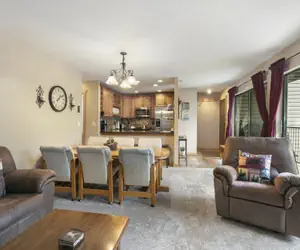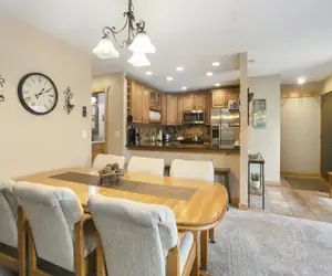 After spending a full day on the slopes or hiking or shopping in the village, enjoy time in the heated pool or soaking in one of the three hot tubs. An amazing gas fireplace provides a relaxing atmosphere for the entire family to enjoy with a dining room table that seats eight.